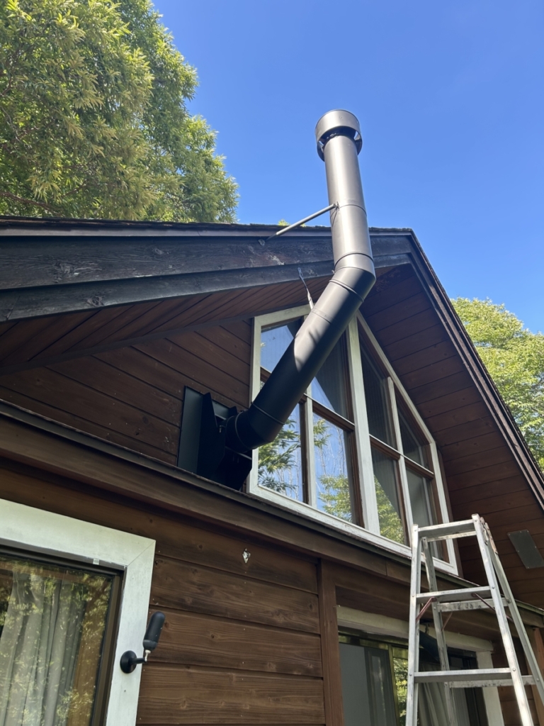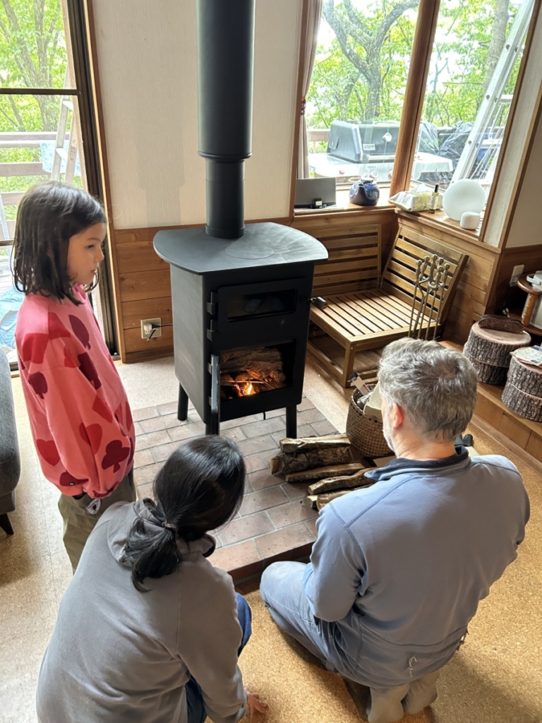蓼科の山中にある別荘にオーブン付き薪ストーブ サンシャインを納品しました。